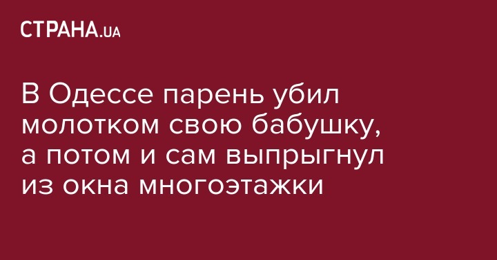 В Одессе мужчина убил свою 73-летнюю бабушку, а после этого выпрыгнул из окна многоэтажки. Об этом сообщает Отдел коммуникаций ГУ НП в Одесской области.