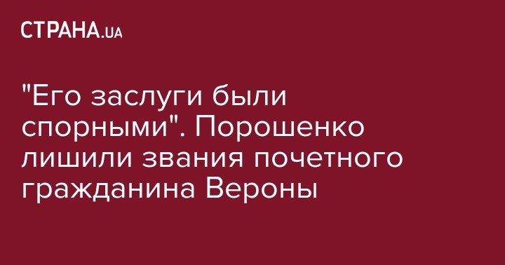Утверждается, что заслуги Порошенко в возвращении картин были спорными. "На самом деле расследование по поиску произведений искусства было осуществлено местными властями". Кроме того, присвоение звания вызвало серьезные сомнения и разногласия как на политическом уровне, так и среди общественности Вероны из-за отсутствия реальной дискуссии о присвоении почетного звания, - говорится в утвержденном веронскими депутатами документе.