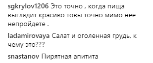 "Плечо обязательно оголять надо было?", "Халат, полуголое плечо. И куда же без тарелки. Фу!", "Сиську надо было оголить", "Симпатичная, но халат - это домашнее. Зачем выносить из избы. В трусах можно, тоже ничего получилось бы", - писали в сети.