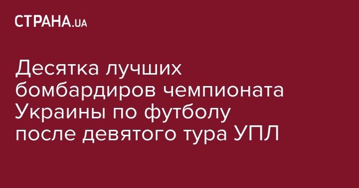 По результатам девятого тура чемпионата Украины УПЛ десятку лучших бомбардиров по-прежнему возглавляет Мораес, на втором месте Марлос - оба "Шахтер", а третью строчку занял Руслан Фомин из "Мариуполя". Также после матча с Ворсклой в десятку попал футболист "Зари" Александр Караваев.
