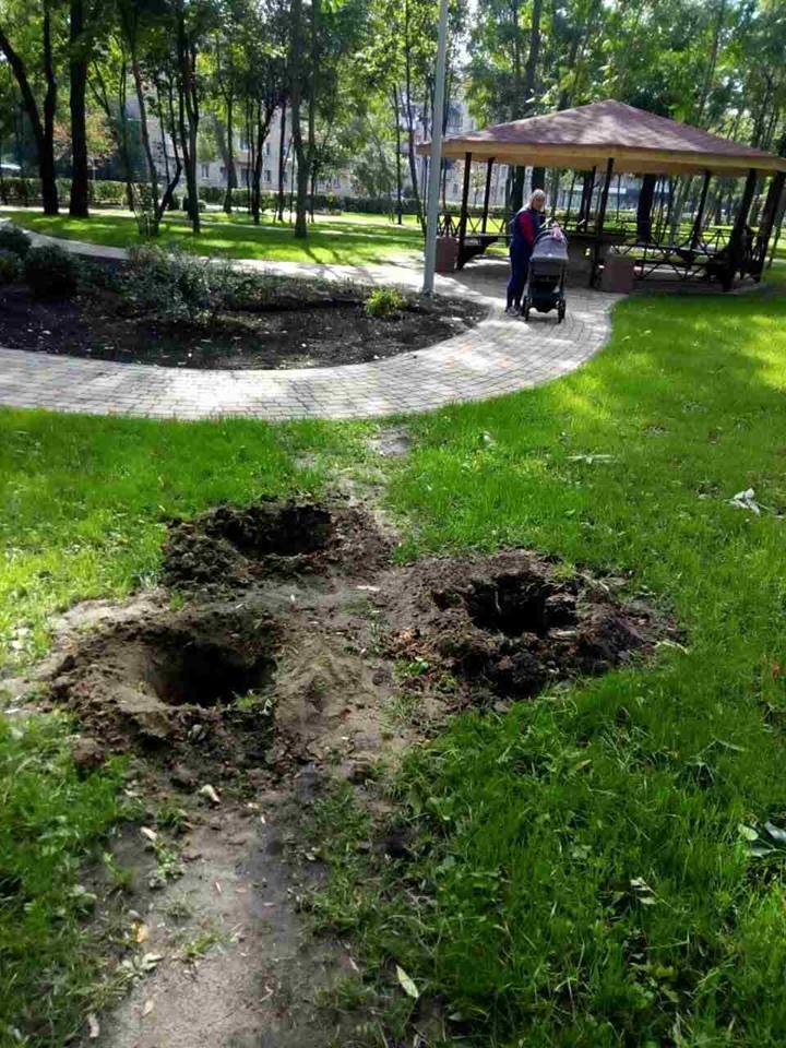 В парке Киева воры выкопали свежевысаженные деревья. Фото