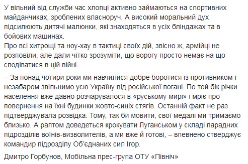 "Ради мира на украинской земле это ракетное подразделение за считанные минуты поднимается по тревоге, выдвигается в нужный район и наносит эффективный точечный удар по важнейшим целям противника в тактической и оперативной глубине его войск. Тем самым ракетный комплекс "Точка-У" ставит убедительную точку в факте самого существования противника, скопления его войск и важнейшего вооружения", - говорится в обнародованном в понедельник пресс-центром сообщении.