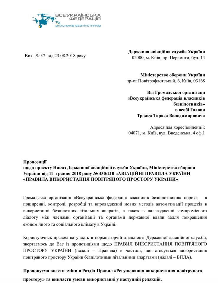 Трояк также отметил, что представителям федерации и владельцам дронов не дали возможность ознакомиться с проектом поправок к регистрации документа в Минюсте.