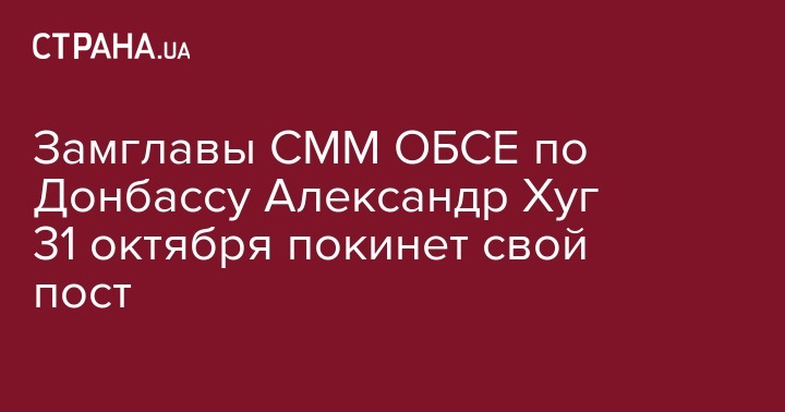 Заместитель главы Специальной мониторинговой миссии (СММ) ОБСЕ в Украине Александр Хуг 31 октября покинет свой пост, в связи с истечением предельного срока работы в ОБСЕ.