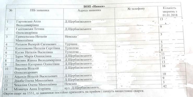 По данным преподавательницы музыки Натальи Коптенковой, списки были разосланы из КГГА в поликлиники. О существовании списков она впервые услышала от медсестры в районной поликлинике. И сообщила, что "в поликлинику поступили списки с фамилиями жителей, с их адресами и телефонами, с количеством жалоб, которые они оставили в коммунальные службы. Медсестрам дали задание по участкам позвонить или лично поговорить с людьми из списков и выяснить, почему они жалуются, а потом доложить руководству".