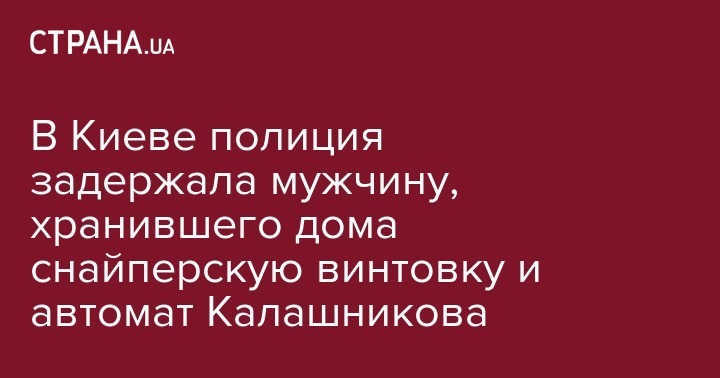 "В ходе операции "Оружие и взрывчатка" столичные правоохранители получили оперативную информацию о хранении оружия на территории Киева. Во время проверки предоставленных сведений, сотрудники Дарницкого управления полиции совместно с работниками Службы безопасности Украины задержали мужчину, у которого изъяли снайперскую винтовку и патроны", - говорится в обнародованной в среду информации.