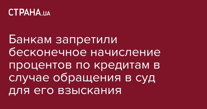 Украинские банки потеряют возможность насчитывать клиентам все новые и новые проценты по кредитам даже в случае их непогашения. Банкиры теряют такую возможность с момента обращения в суд для принудительного взыскания займа или заложенного по нему имущества.