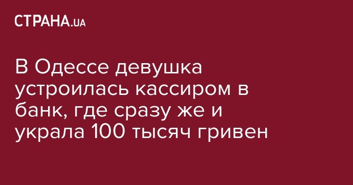 В Одессе девушка устроилаcь кассиром в банк, где сразу же и украла 100 тысяч гривен