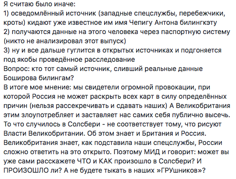 Впрочем, многие даже в России уверены, что все разоблачения по поводу Боширова-Чепиги это правда (особенно после репортажа "Коммерсанта" из его родной деревни).