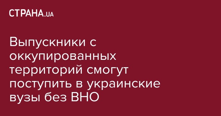 "Главная цель закона - это дать возможность нашим ученикам с временно оккупированных территорий на получение высшего образования в Украине, не обязательно сдавая ВНО. Выпускники с этих территорий могут сдать государственную итоговую аттестацию и получить документ государственного образца о полном общем среднем образовании", - заявила она.