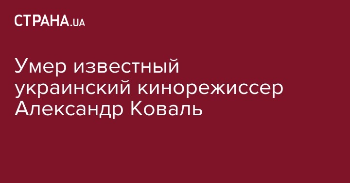 Украинский кинорежиссер Александр Коваль умер на 74-м году жизни. Об этом сообщил кинокритик Сергей Трымбач.