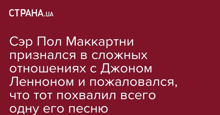 Сэр Пол Маккартни признался в сложных отношениях с Джоном Ленноном и пожаловался, что тот похвалил всего одну его песню