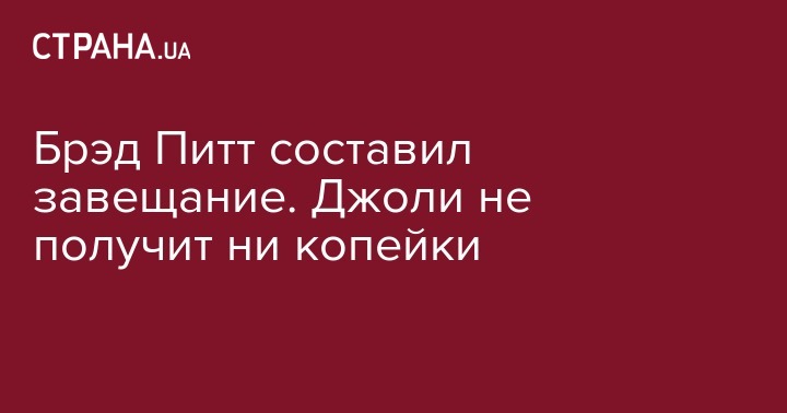 Один из самых высокооплачиваемых актеров и продюсеров Голливуда 54-летний Брэд Питт  составил завещание по которому все его миллионы достанутся шестерым детям. При этом артист решил обезопасить состояние от бывшей супруги Анджелины Джоли. Об этом сообщает Radaronline.