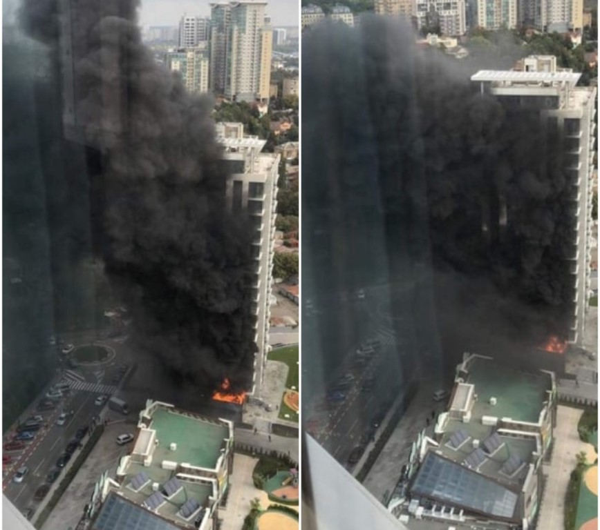 На видео видно, как клубы черного дыма поднимаются до самого неба.