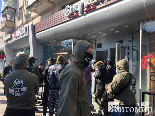 В пятницу, 28 сентября в Житомире активисты С-14 закидали дымовыми шашками кафе сети "Шарикава", владельцев которого они считают "ватниками". Инцидент произошел после потасовки в суде над блогером Муравицким, которая возникла между группой его поддержки и активистами С-14. Об этом пишет "Журнал Житомира".