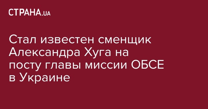 Стал известен сменщик Александра Хуга на посту главы миссии ОБСЕ в Украине