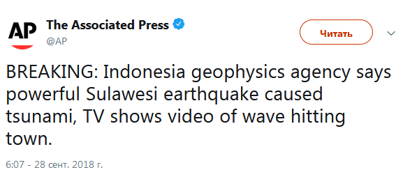 Также мы сообщали, как в августе землетрясение в Индонезии унесло жизни почти 40 человек и стало причиной цунами.