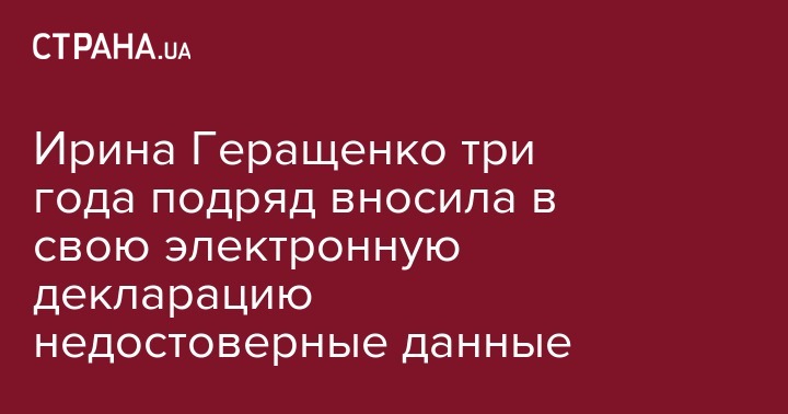 Результаты полной проверки деклараций первого заместителя Верховной Рады Ирины Геращенко были утверждены в пятницу, 28 сентября. Оказалось, что нарушения были зафиксированы в документах за три года: 2015, 2016 и 2017.