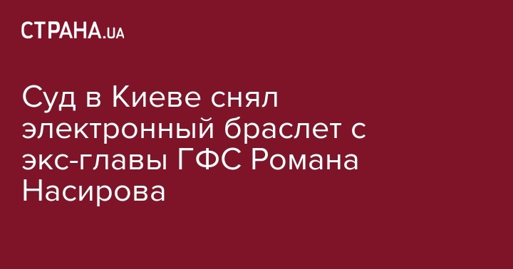 Шевченковский районный суд Киева на заседании в пятницу отменил обязательство экс-председателя Государственной фискальной службы Украины Романа Насирова, обвиняемого в злоупотреблении служебным положением и служебном подлоге, носить электронный браслет, сообщает Специализированная антикоррупционная прокуратура (САП).