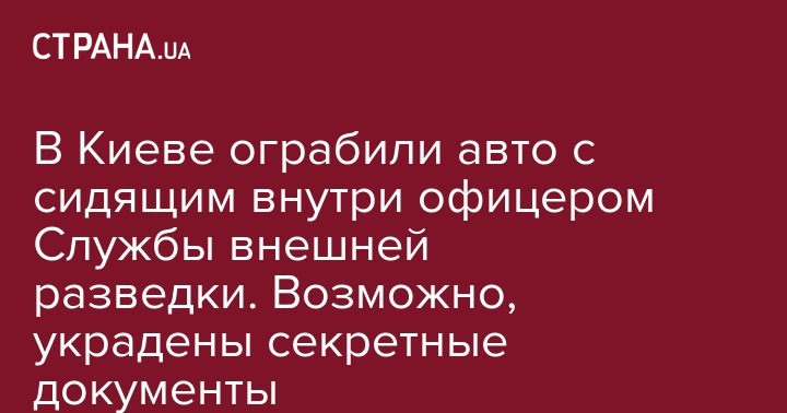 В Киеве ограбили авто с сидящим внутри офицером Службы внешней разведки. Возможно, украдены секретные документы