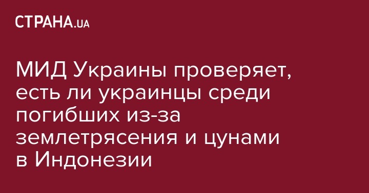 Вчера, 28 сентября, в Индонезии произошло сильнейшее землетрясение, которое вызвало появление цунами. Более 400 человек погибли в результате стихийного бедствия. Были ли среди них украинцы, проверяет Министерство иностранных дел. Об этом на своей странице в Twitter сообщила экс-пресс-секретарь МИД Марьяна Беца.