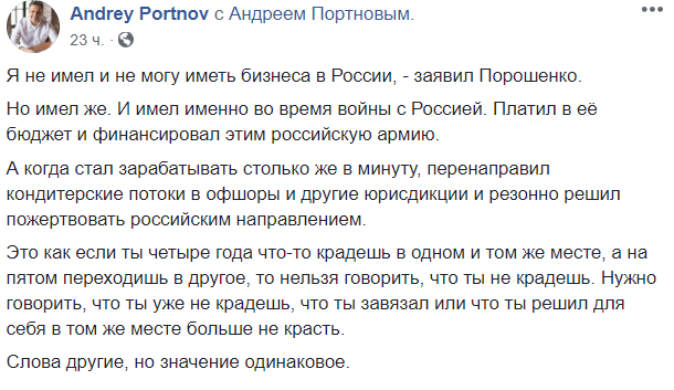 А когда стал зарабатывать столько же в минуту, перенаправил кондитерские потоки в офшоры и другие юрисдикции и резонно решил пожертвовать российским направлением.