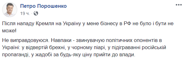 "Я не имел и не могу иметь бизнеса в России, – заявил Порошенко.