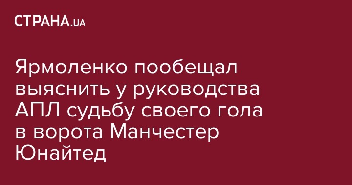 Ярмоленко пообещал выяснить у руководства АПЛ судьбу своего гола в ворота Манчестер Юнайтед