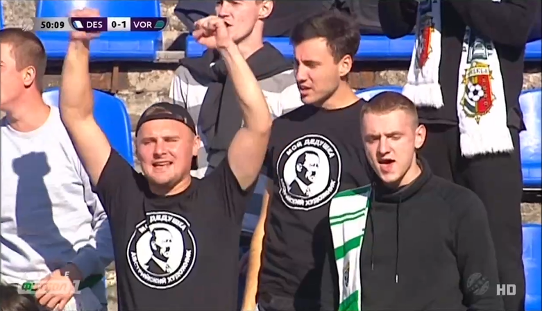 Сегодня, 30 сентября, фанаты полтавской "Ворсклы" надели футболки с портретом Гитлера на матч против "Десны", их заметили телевизионные камеры. Об этом сообщает "Трибуна".