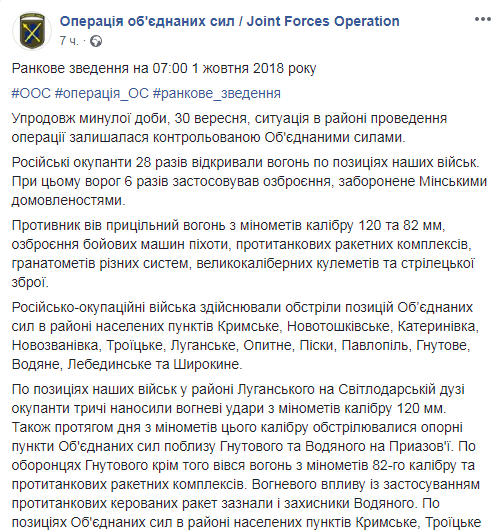 Скриншот: Facebook/ Операція об'єднаних сил / Joint Forces Operation