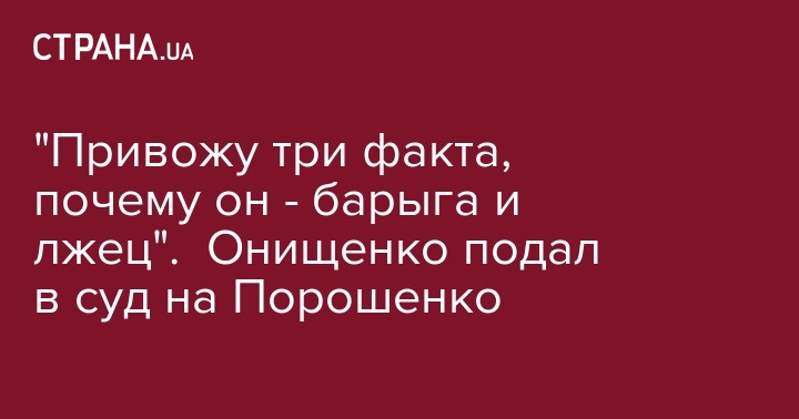 Эмигрировавший из Украины народный депутат Александр Онищенко объявил, что подает в суд на президента Петра Порошенко. Он его обвиняет в клевете, пишет Онищенко на своей странице в Facebook.