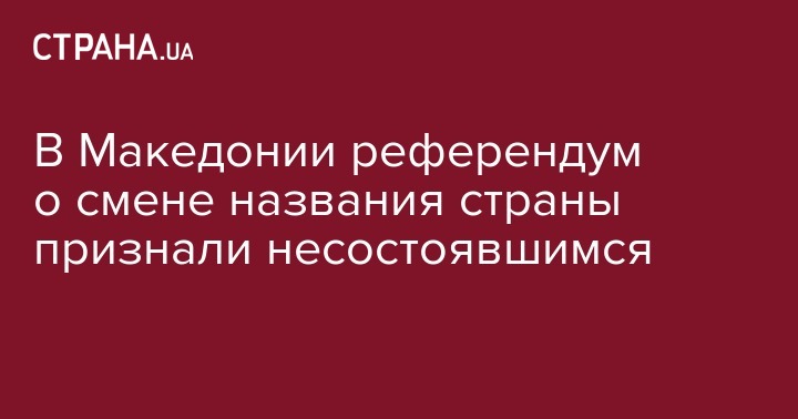 Референдум об изменении названия Македонии признали несостоявшимся из-за низкой явки избирателей. Об этом сообщило Македонское информационное агентство MIA.