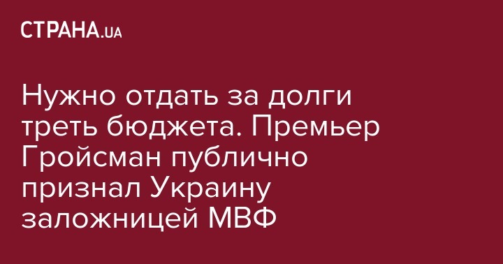 Нужно отдать за долги треть бюджета. Премьер Гройсман публично признал Украину заложницей МВФ