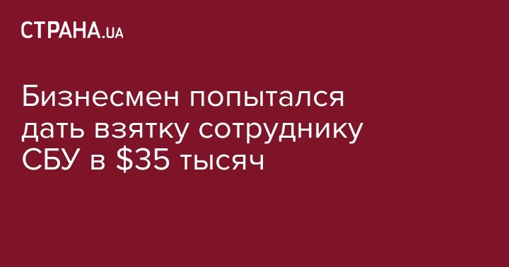 СБУ сообщила о задержании бизнесмена, который пытался дать взятку сотруднику СБУ в сумме более $35 тыс. Взятка была предложена за разрешение импорта товара, который был оформлен с нарушением таможенных правил. Об этом говорится в сообщении СБУ.