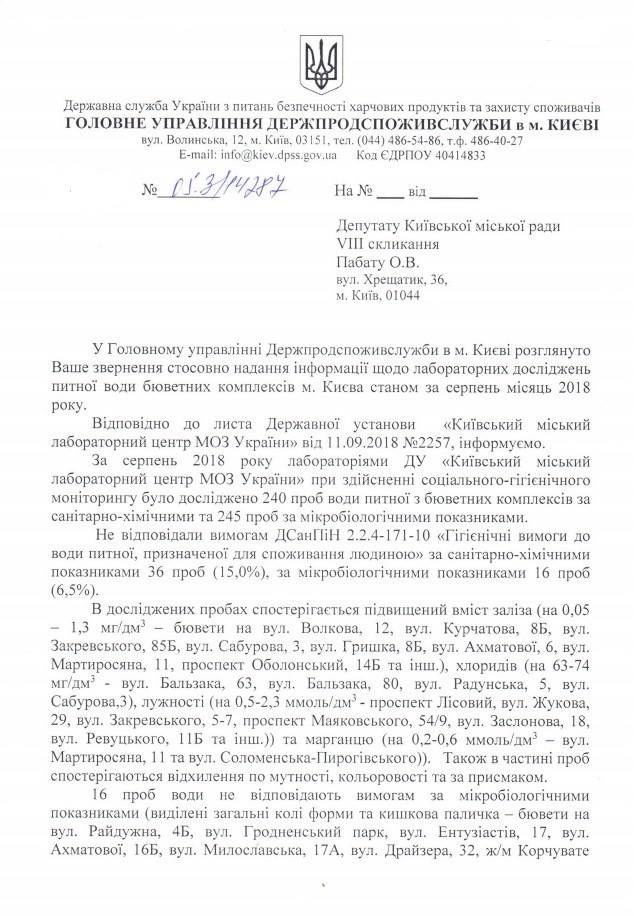 Вода в бюветах Киева может быть не просто невкусной, но и опасной для здоровья. Об этом идет речь в результатах лабораторных исследований, которые на своей странице в Facebook опубликовал депутат Киевского совета Александр Пабат.