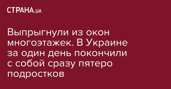 Как написал на своей странице в соцсети первый заместитель главы Нацполиции Украины Вячеслав Аброськин, только за прошлые сутки, 1 октября, в Украине самоубийством покончили жизнь трое детей. Суициды произошли в Киеве, Днепропетровской и Запорожской областях, где покончили с собой подростки 13, 17 и 14 лет. А утром 2 октября к шокирующей статистике добавились еще два случая - в Мариуполе наложили на себя руки сразу две девочки - 16 и 14 лет. Во всех этих случаях подростки выбросились из окон многоэтажных домов.