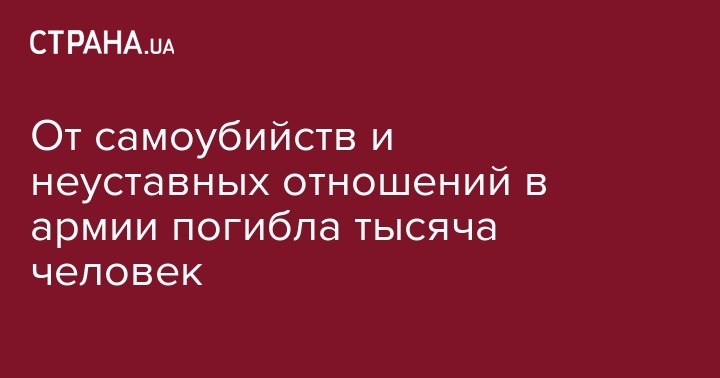 В армии не от боевых действий погибли более тысячи человек, еще три тысячи раненых. Речь идет о самоубийстве, алкоголизме, неосторожном обращении с оружием, неуставных отношениях. Об этом заявил главный военный прокурор Анатолий Матиос в эфире телеканала 112 Украина.