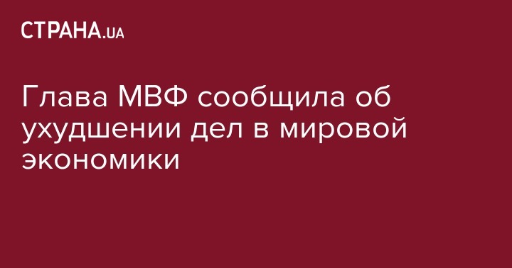 Риски в мировой экономике начали материализовываться, что может означать вероятность ухудшения прогноза роста мировой экономики. Такое заявление сделала глава Международного валютного фонда (МВФ) Кристин Лагард, сообщает агентство "Интерфакс-Украина" со ссылкой на Bloomberg.