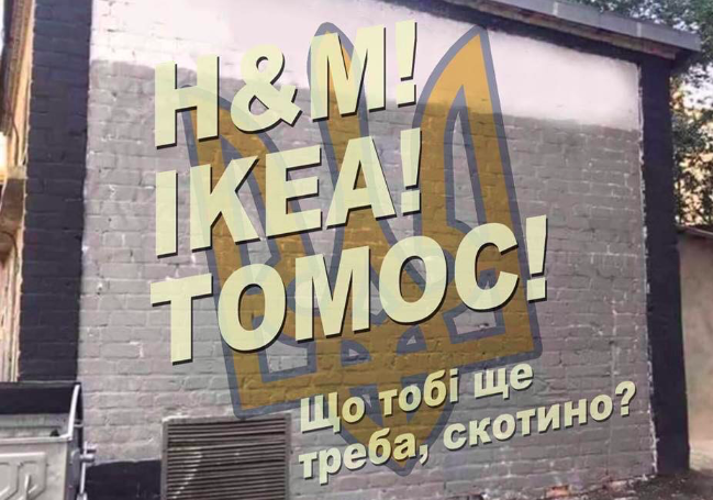 Вскоре после появления таких билбордов пользователи соцсетей "видоизменили" рекламу. На изображении, приведенном ниже, высмеивается комментирование президентом открытия магазина H&M, анонс открытия IKEA в Украине и предоставление Томаса об автокафелии, который, к слову, на данный момент не получен.