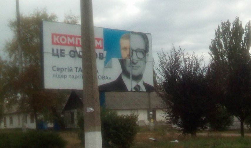 К слову, с одним из плакатов Таруты случился конфуз. "Вилкул лезет из Таруты. Какая шикарная инсталляция. Борд надо было бы срезать да передать в музей украинской политики, если бы такой был", - написал журналист Денис Казанский.