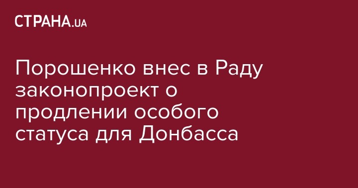 Президент Петр Порошенко сегодня, 3 октября, зарегистрировал в Раде законопроект №9153, который предусматривает продление действия закона "Об особом порядке местного самоуправления в отдельных районах Донецкой и Луганской областей".