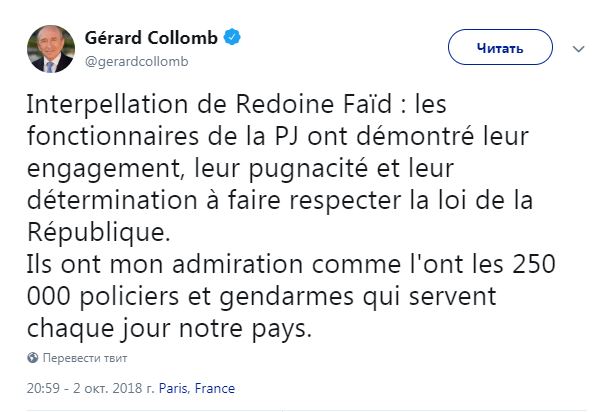 "Задержание Редуана Фаида: сотрудники судебной полиции продемонстрировали приверженность делу, упорство и боевой дух, чтобы защищать правопорядок в стране. Я восхищаюсь как ими, так и 250 тыс. полицейских и жандармов, которые каждый день служат нашей стране", - написал он.
