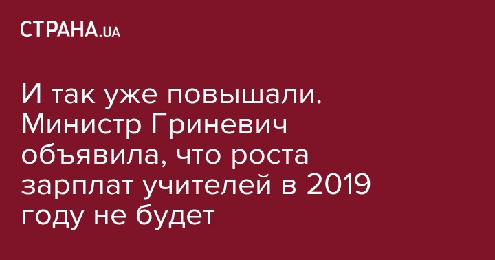 И так уже повышали. Министр Гриневич объявила, что роста зарплат учителей в 2019 году не будет