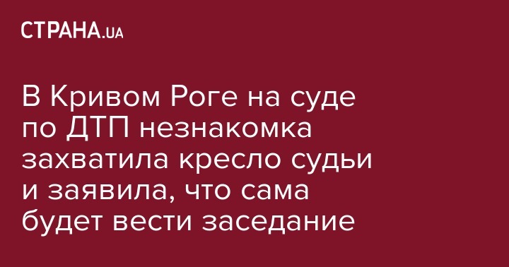 В Октябрьском районном суде города Кривого Рога 18 сентября отложили заседание суда, на котором должны были рассматривать гражданский иск о взыскании материального и морального вреда в результате ДТП. В зал вошла незнакомка, заняла место судьи и не покинула это место, пока не перенесли заседание. Об этом пишет "Закон и Бизнес".