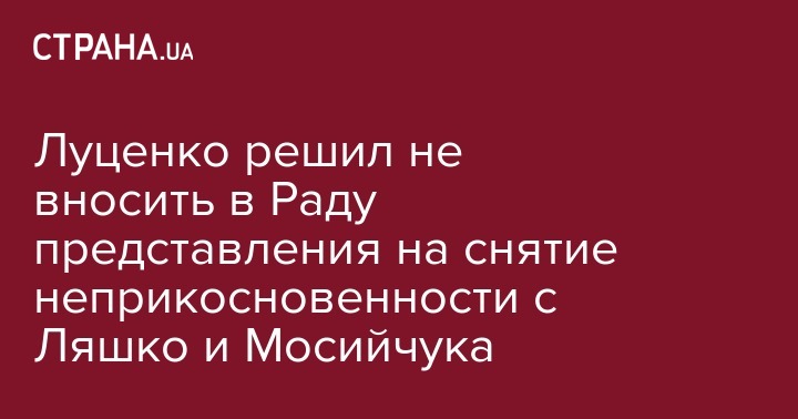 Луценко решил не вносить в Раду представления на снятие неприкосновенности с Ляшко и Мосийчука