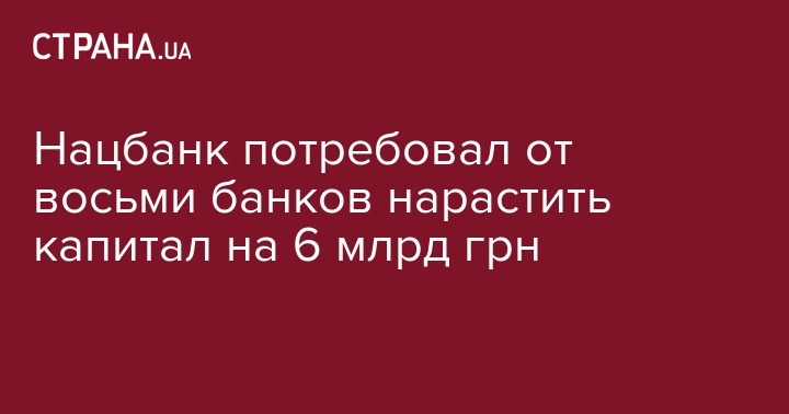 Национальный банк Украины (НБУ) потребовал от 8 из 24 банков, участвовавших в оценке качества активов и стресс-тестировании, докапитализации на общую сумму 6,1 млрд грн. Об этом сообщается на сайте центробанка.