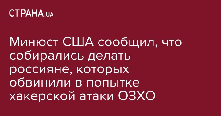 Минюст США сообщил, что собирались делать россияне, которых обвинили в попытке хакерской атаки ОЗХО