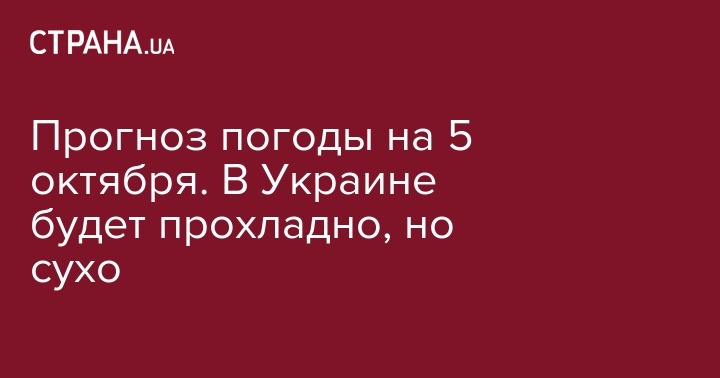 Погода в Украине сегодня, 5 октября, будет на всей территории Украины солнечной и сухой, но уже довольно прохладной. Об  этом информирует Укргидрометцентр.