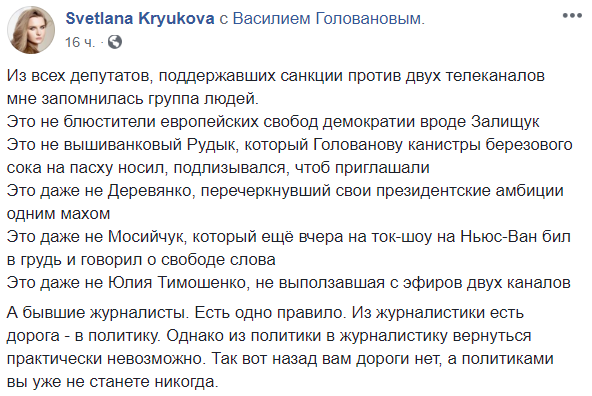 "Из всех депутатов, поддержавших санкции против двух телеканалов мне запомнилась группа людей.