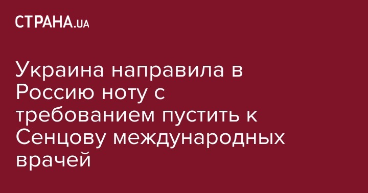 Украина направила в Россию ноту с требованием пустить к Сенцову международных врачей